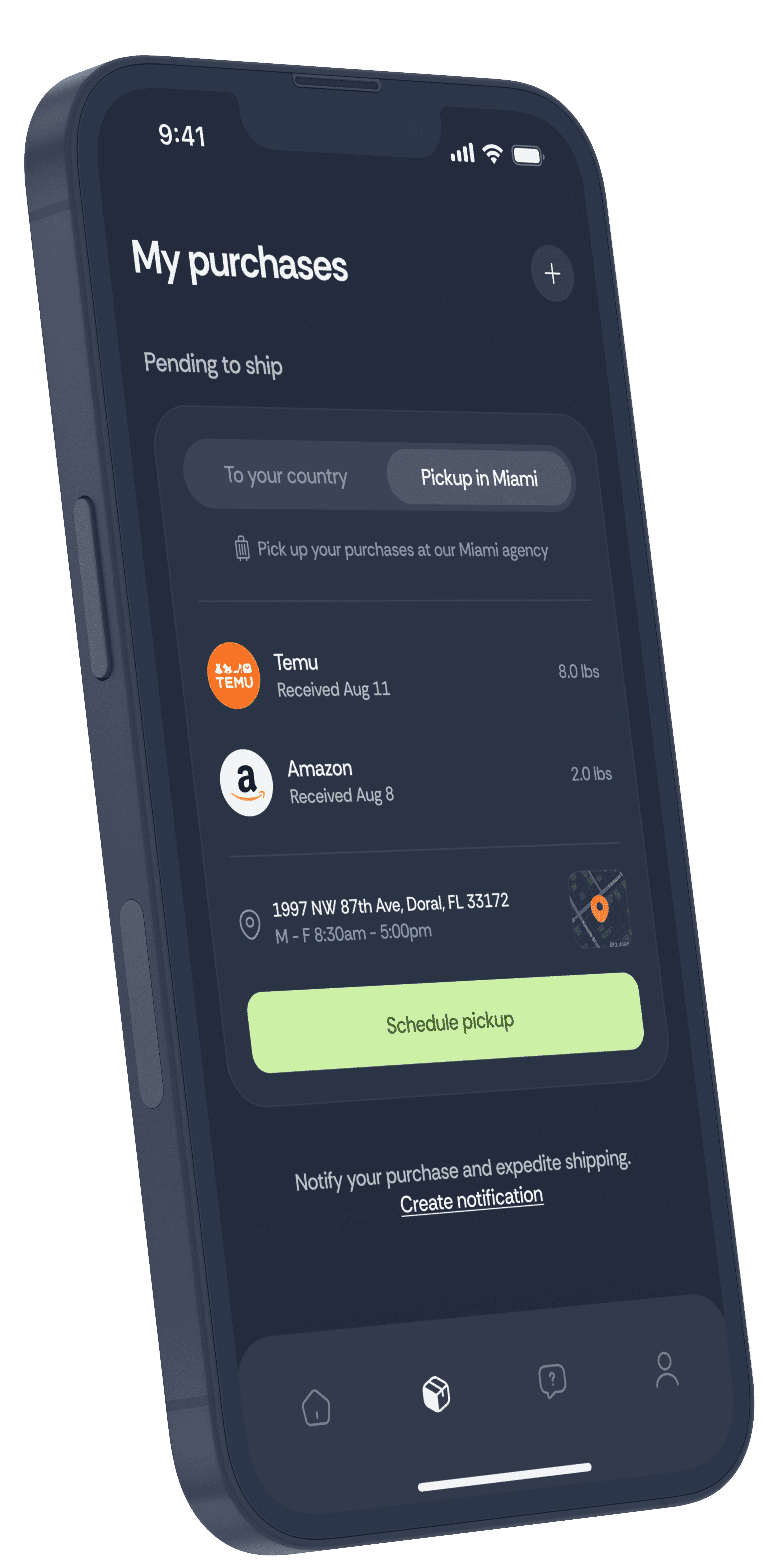 Send your purchases from anywhere in the world to our warehouses in Miami and Madrid — we’ll take care of the rest.”